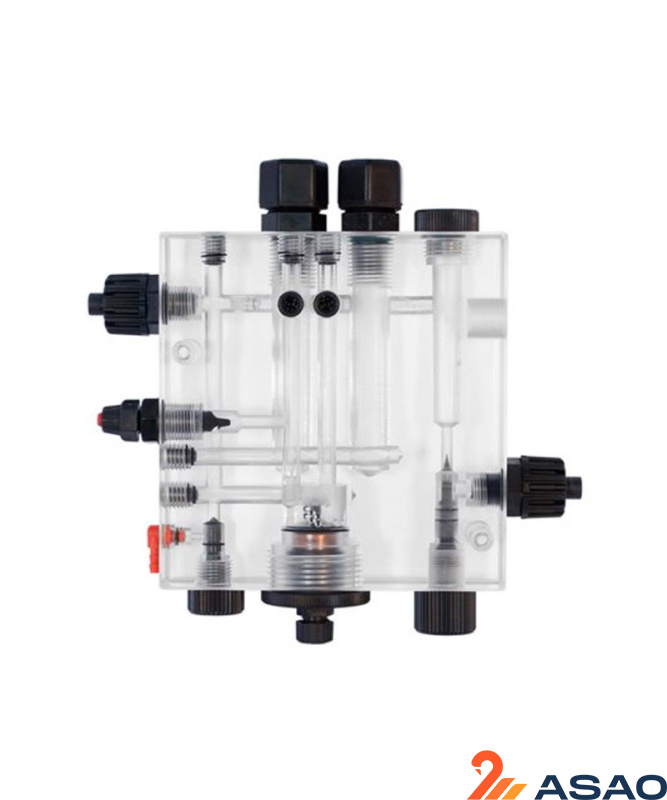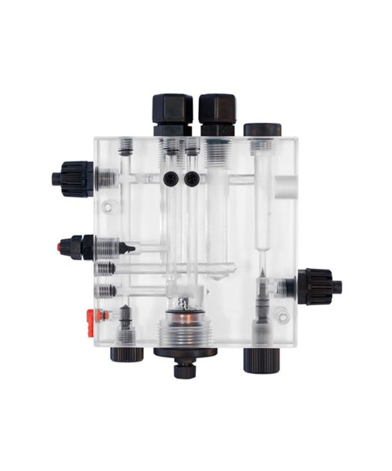 - SCLO 3 HYCHLOR - проточный амперометрический датчик свободного (остаточного) хлора с медно-платиновыми электродами. Датчик предназначен для работы с гипохлоритом натрия (внимание - только неорганический хлор). Датчик хлора SCLO 3 HYCHLOR комплектуется датчиком потока, а также содержит ручку тонкой регулировки потока, ниппель для взятия отбора проб и встроенным клапаном впрыска, для подачи прямо на измерительный датчик, раствора-очистителя медного электрода. Для корректной и правильной работы датчика хлора SCLO 3 HYCHLOR необходим постоянный поток 40–60 л/ч. В датчике предусмотрено место для установки датчиков (электродов) уровня рН и RedOx (ОВП). Диапазон измерений: 0–2 ppm (0–2 мг/л). Стабильное измерение свободного неорганического хлора в воде: в диапазоне 6–8 рН. Максимальная температура проточной жидкости: до 45 °C. Максимальное противодавление в системе: до 5 бар. Подсоединения: ниппель 1/2” на шланг 10x14. Материал исполнения: плексиглас/полипропилен Внимание! Для подключения датчика свободного хлора SCLO 3 HYCHLOR к анализаторам жидкости серии eSELECT и дозирующим насосам со встроенными контроллерами, необходим кабель с адаптером сигнала для подключения датчика хлора SCLO 3 HYCHLOR (в комплект поставки не входит, приобретается отдельно)