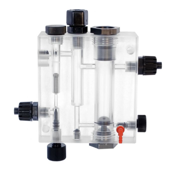 - Проточный (OFF-LINE) держатель датчика PH (или RedOx/PT100) и датчика хлора SONDA CL, в комплекте с датчиком потока. В держателе датчиков установлена тонкая регулировка потока и ниппель отбора проб. Максимальная температура проточной жидкости: 45 °C. Максимальное противодавление в системе: 5 бар. Подсоединения: ниппель 1/2” на шланг 10x14. Совместим по подключению к анализаторам жидкости (контроллерам) серии eSELECT и насосами-дозаторами серий BT PH-RX-CL /M и DLX(B) PH-RX-CL /M