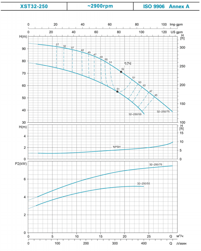 | 32-200/40* | 4 | 5.5 | 52 | 50.5 | 50 | 45 | 41.9 | 35 | 30.3 | |