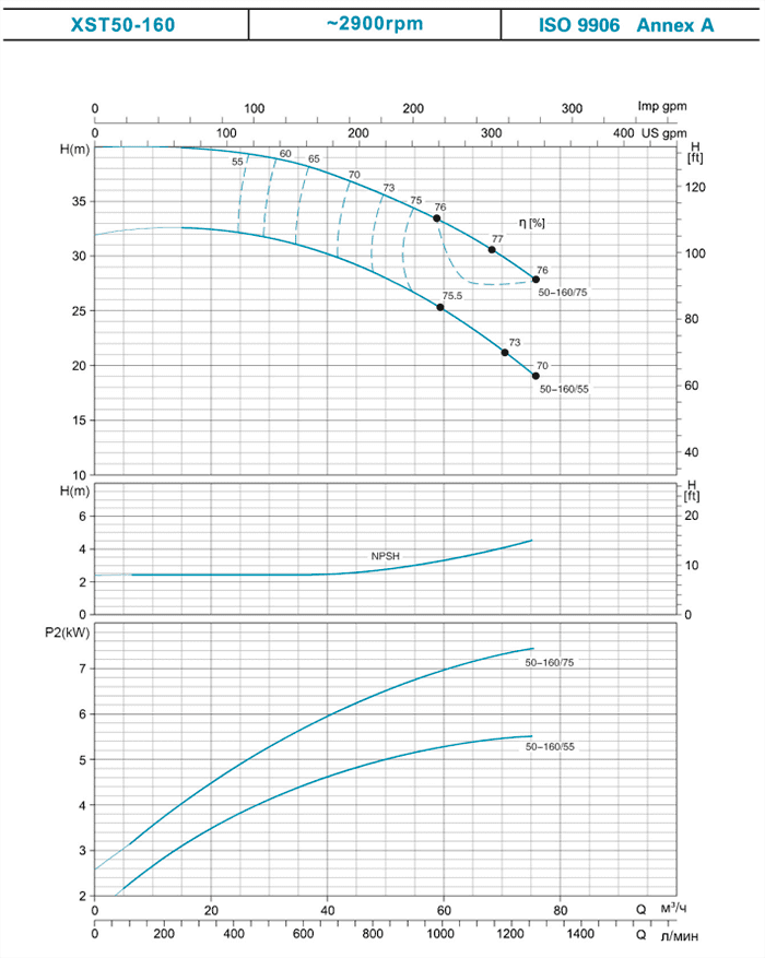 | 50-160/55 | 5.5 | 7.5 | 32 | 30.6 | 30 | 28 | 26.6 | 20.5 | ||
