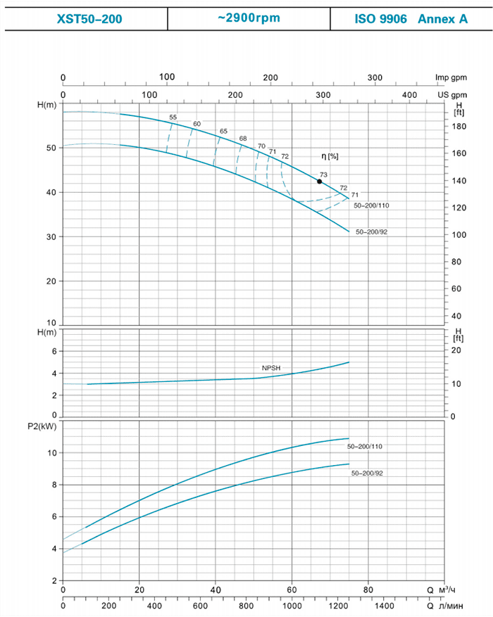 | 50-200/110* | 11 | 15 | 57.5 | 53.5 | 52 | 50 | 47.5 | 40 | ||