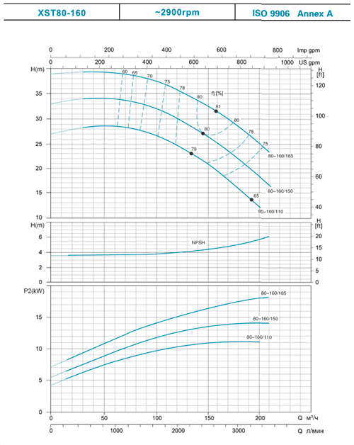 | 80-160/110 | 11 | 15 | H (m) | 27 | 27.3 | 26 | 24.5 | 22.5 | 16 | |