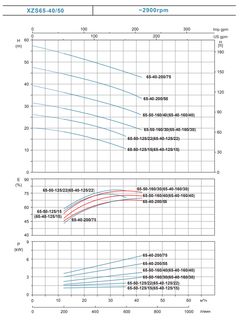 | - | XZS65-50-160/55 | 5.5 | 7.5 | 33 | 29.5 | 29 | 28.5 | 28 | 27 | 26 | 24 | 20 | |||||