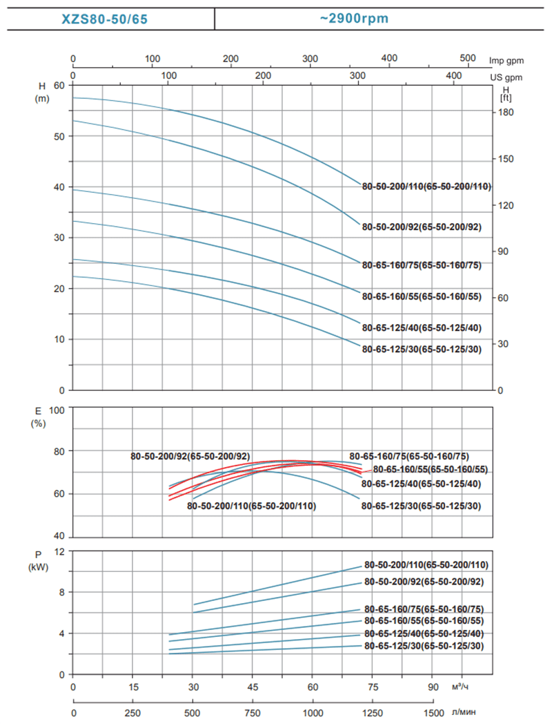 | - | XZS80-65-160/92 | 9.2 | 12.5 | 33 | 31 | 30 | 28 | 26 | 23 | |||||||