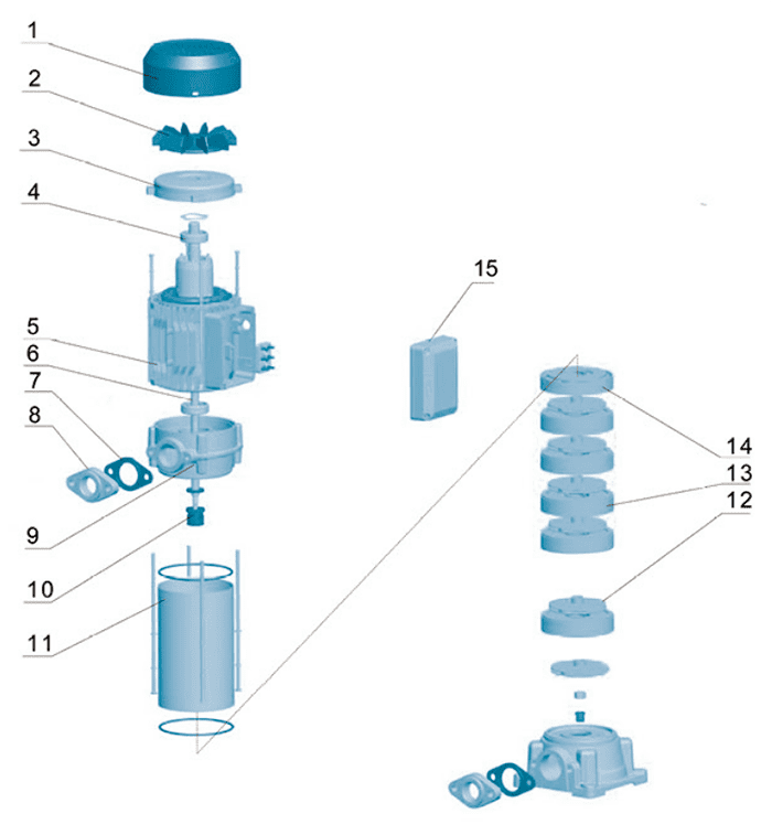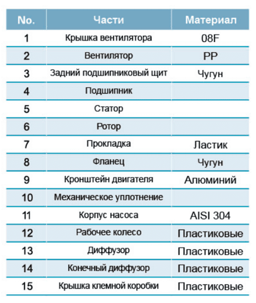 | Модель | Мощность | Q (м³ /ч) | 0 | 1 | 2 | 3 | 4 | 5 | 6 | ||