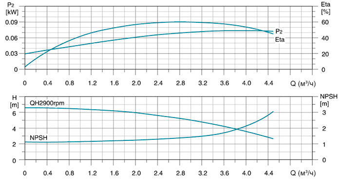 | Модель | Мощность (кВт) | Q (м³/ч) | 1,2 | 1,6 | 2 | 2,4 | 2,8 | 3 | 3,6 | 4 | 4,5 |