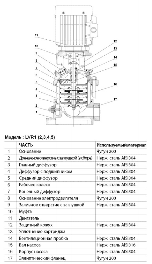 | Вертикальный многоступенчатый насос LVR4-17 | 4 | 163 | 153 | 149 | 137 | 122 | 108 | 83 | 62 | |