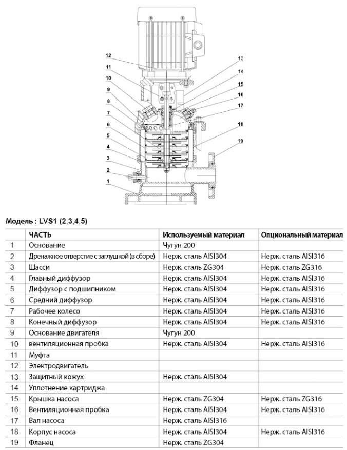 | Вертикальный многоступенчатый насос LVR4-19 | 4 | 183 | 171 | 168 | 155 | 137 | 123 | 95 | 67 | |