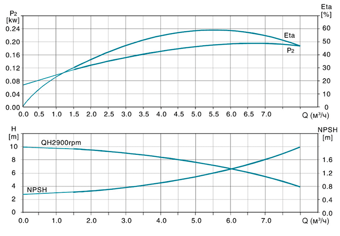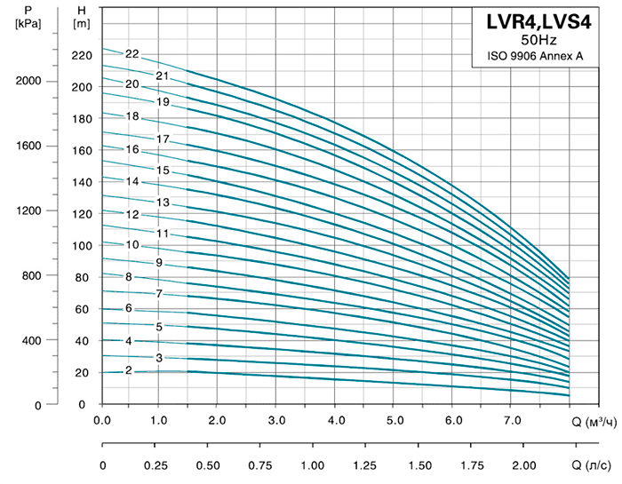 | Вертикальный многоступенчатый насос LVR4-2 | 0,37 | H (м) | 19 | 18 | 17 | 14,5 | 13 | 10,5 | 8 | 6 |