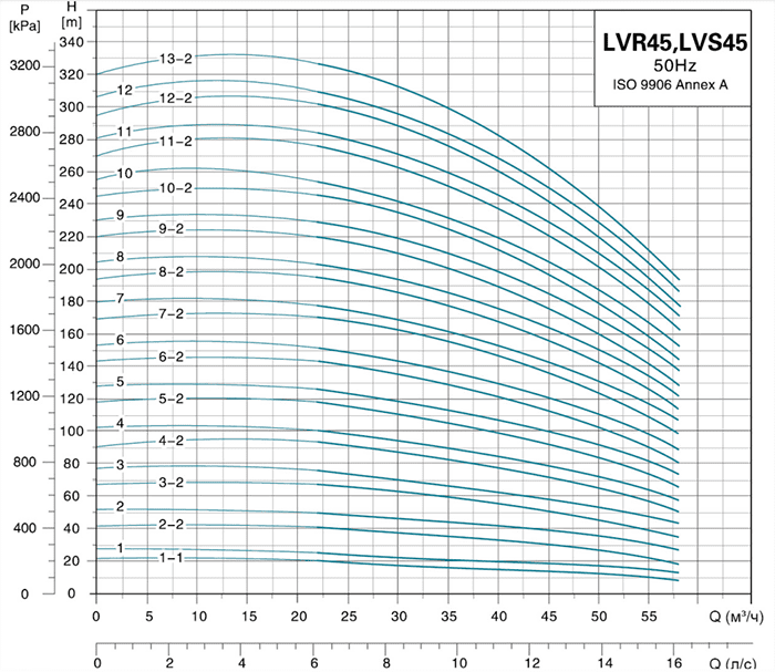| Вертикальный многоступенчатый насос LVR45-1-1 | 3 | H (м) | 20 | 19,5 | 18 | 17 | 15 | 12,5 | 10,5 | 8 |