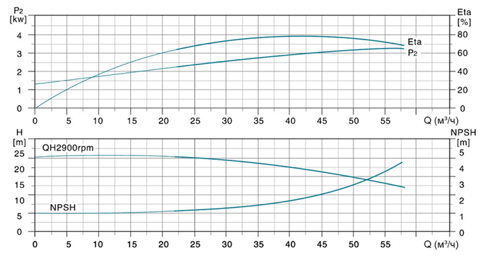 | Модель | Мощность (кВт) | Q (м³/ч) | 25 | 30 | 35 | 40 | 45 | 50 | 55 | 58 |