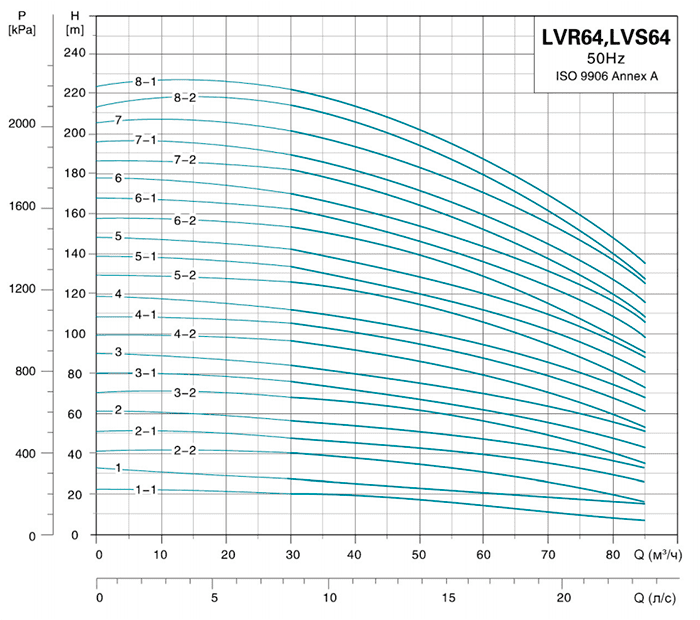 | Вертикальный многоступенчатый насос LVR64-1-1 | 4 | H (м) | 20 | 19 | 17,5 | 14 | 12 | 8,5 | 6 |