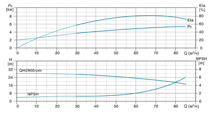| Модель | Мощность (кВт) | Q (м³/ч) | 30 | 40 | 50 | 64 | 70 | 80 | 85 |