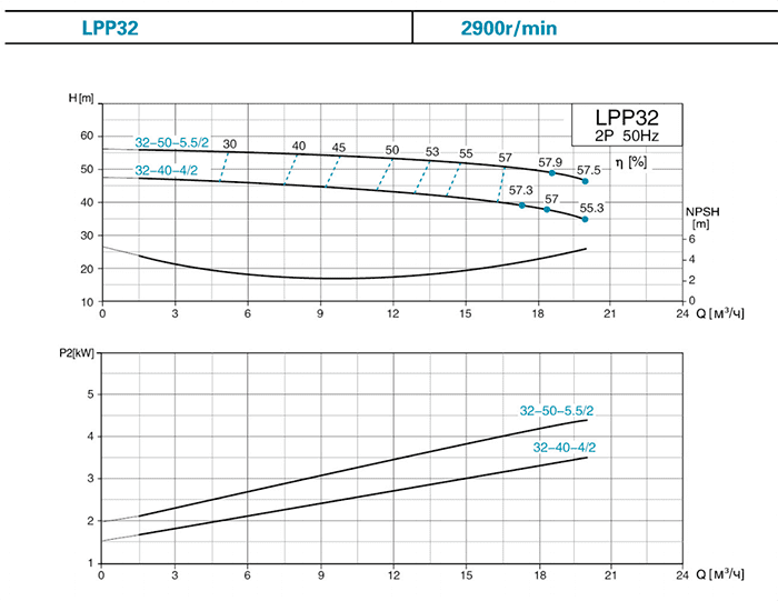 | LPP32-50-5.5/2∆ | 5.5 | 2900 | 12.5 | 50 | 20 | 53.5 | 2.5 |