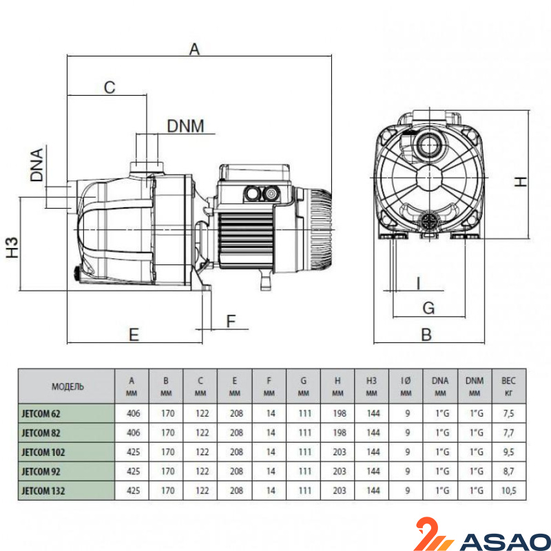 Поверхностный самовсасывающий центробежный насос DAB JETCOM 132 M имеет значительную всасывающую способность даже в том случае, когда вода наполнена пузырьками или небольшим количеством взвешенного песка.