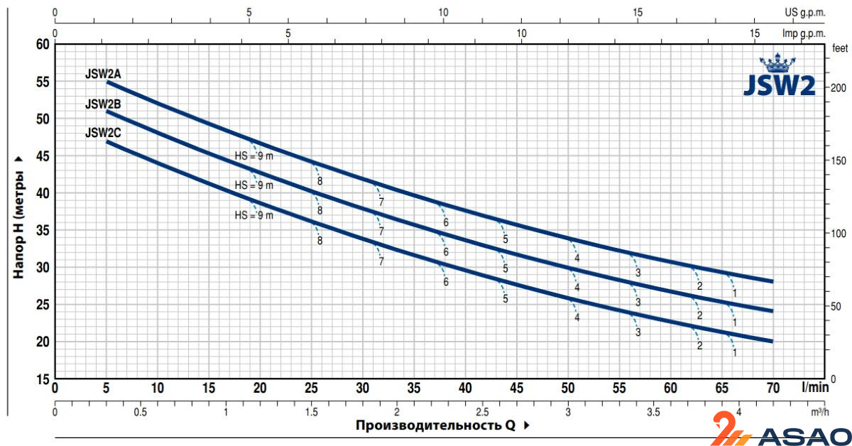 Серия JSW включает в себя самовсасывающие электронасосы центробежного типа серии PEDROLLO JSW1. Эффект самовсасывания достигается благодаря эжектору, установленному в корпусе насоса. Только часть общей подачи, выработанной рабочим колесом закрытого центробежного типа, направляется в нагнетательный патрубок; оставшаяся часть рециркулируется посредством эжектора, который, будучи соединен с камерой всасывания, создает в ней разрежение, необходимое для самовсасывания. При первом запуске достаточно заполнить водой корпус насоса; заполнять всасывающий трубопровод и удалять возможно присутствующие воздушные мешки нет необходимости. В момент запуска вода, содержащаяся в корпусе, циркулируя через эжектор, переместит воздух из камеры всасывания в нагнетательную камеру, выталкивая его через выходной трубопровод. Одновременно с этим образовавшийся таким образом вакуум приведет к подъему уровня воды во всасывающем трубопроводе, вызывая тем самым подсос. Постоянное функционирование системы самовсасывания делает такие насосы практически нечувствительными к присутствию (даже значительному) воздуха в накачиваемой жидкости. При разработке серии JSW на основе предыдущего опыта PEDROLLO особое внимание было уделено подбору материалов и гидравлической эффективности, в результате чего насосы стали более компактными, улучшились эксплуатационные характеристики, снизился шум.