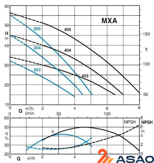 Насос Calpeda MXA 404/A относится к типу моноблочных горизонтальных многоступенчатых насосов и имеет компактную мобильную конструкцию, поэтому насосы удобно эксплуатировать и перемещать. Насос требует минимум сервисного обслуживания и легок в установке. Самая популярная задача - обеспечивать подачу воды в частные здания и коммерческие сооружения. Также насосы эксплуатируются в сельском хозяйстве для полива территорий. Насос дополнительно защищен от работы без воды. Всасывающий патрубок, которым комплектуется насос, находится выше насосного вала и обеспечивает функцию самовсасывания. Насос не требуется полностью заливать водой перед исполдьзованием. Корпус имеет монолитную конструкцию, открыт только с одной стороны, а монолитными являются соединительная часть и основание - это надежно защищает двигатель насоса от попадания влаги внутрь. Водный поток движется вокруг ступеней, поэтому насос Calpeda MXA 404/A производит меньше шума. Основной материал исполнения - нержавеющая хромоникелевая сталь. Детали насоса также выполнены из высококачественных материалов: корпус ступени, всасывающая часть и рабочее колесо - норил, механическое уплотнение - керамика. Подобные материалы предотвращают коррозию и окисление, что позволяет эксплуатировать насос долгие годы. Двигатель имеет современную конструкцию и справляется с интенсивными нагрузками. Мощность насоса Calpeda MXA 404/A составляет 0.75 кВт, а напряжение — 380В В. Насос обеспечивает напор от 15 до 40 м, производительность — от 2 до 7 м³/ч.Область применения