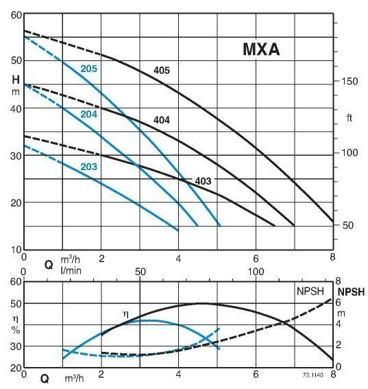 Насос Calpeda MXA 405/A относится к типу моноблочных горизонтальных многоступенчатых насосов и имеет компактную мобильную конструкцию, поэтому насосы удобно эксплуатировать и перемещать. Насос требует минимум сервисного обслуживания и легок в установке. Самая популярная задача - обеспечивать подачу воды в частные здания и коммерческие сооружения. Также насосы эксплуатируются в сельском хозяйстве для полива территорий. Насос дополнительно защищен от работы без воды. Всасывающий патрубок, которым комплектуется насос, находится выше насосного вала и обеспечивает функцию самовсасывания. Насос не требуется полностью заливать водой перед исполдьзованием. Корпус имеет монолитную конструкцию, открыт только с одной стороны, а монолитными являются соединительная часть и основание - это надежно защищает двигатель насоса от попадания влаги внутрь. Водный поток движется вокруг ступеней, поэтому насос Calpeda MXA 405/A производит меньше шума. Основной материал исполнения - нержавеющая хромоникелевая сталь. Детали насоса также выполнены из высококачественных материалов: корпус ступени, всасывающая часть и рабочее колесо - норил, механическое уплотнение - керамика. Подобные материалы предотвращают коррозию и окисление, что позволяет эксплуатировать насос долгие годы. Двигатель имеет современную конструкцию и справляется с интенсивными нагрузками. Мощность насоса Calpeda MXA 405/A составляет 1.1 кВт, а напряжение — 380В В. Насос обеспечивает напор от 14 до 51 м, производительность — от 2 до 8 м³/ч.Область применения